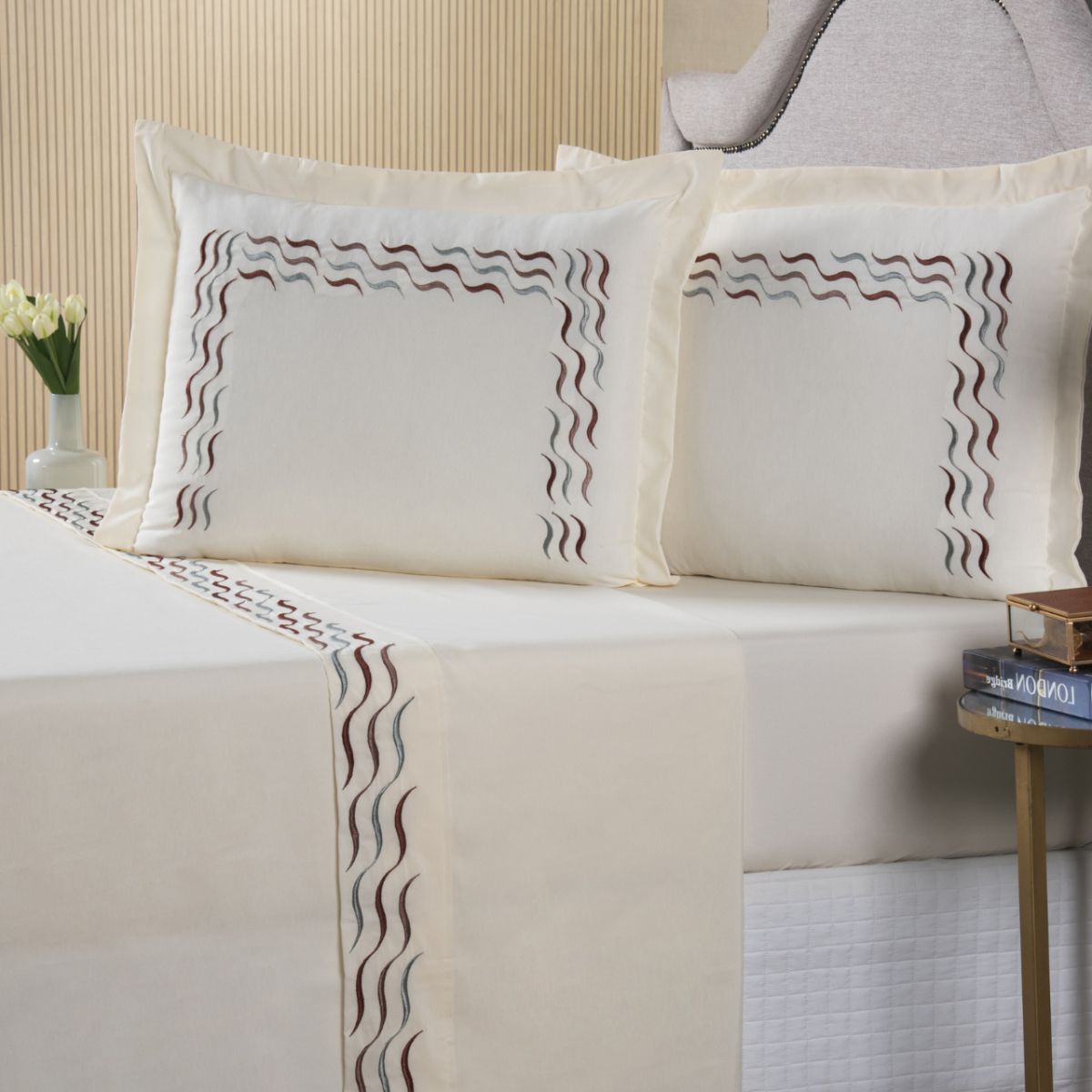 Com bordados sofisticados e acabamento impecável, o kit une beleza clássica e sensação de maciez desde o primeiro toque. O tecido 100% algodão garante respirabilidade, conforto térmico e noites mais aconchegantes. Cada peça foi pensada para transformar sua cama em um verdadeiro convite ao relaxamento.